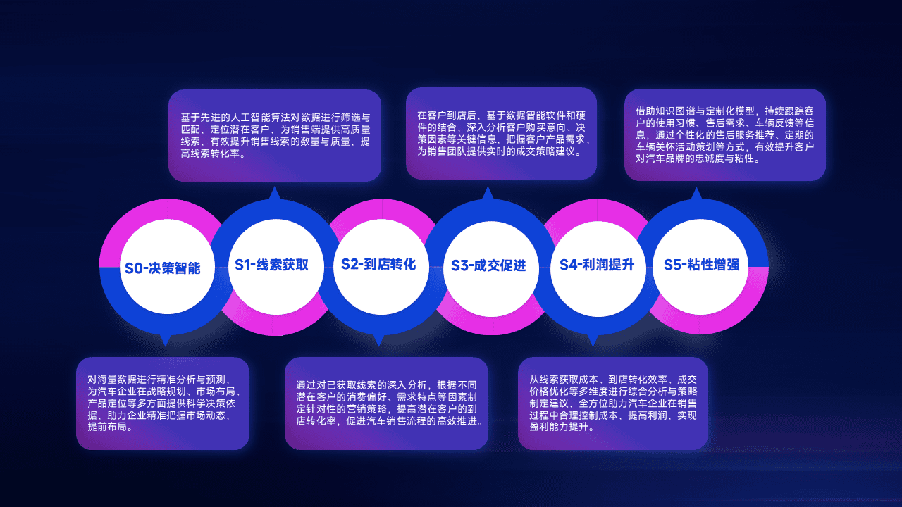 通过拓宽潜在客户来源、、优化线索分配并提高到店转化率,,,,以增强销售效率。。同时,,,利用线索数据不断优化分析模型,,有效提升转化率,,,,扩大营销影响力。。